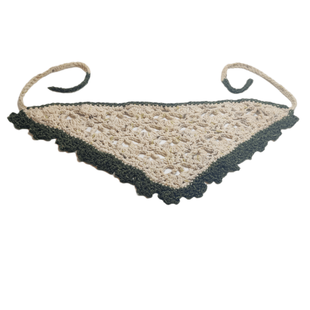 wHite (with speckles) n green doily lookin bandana